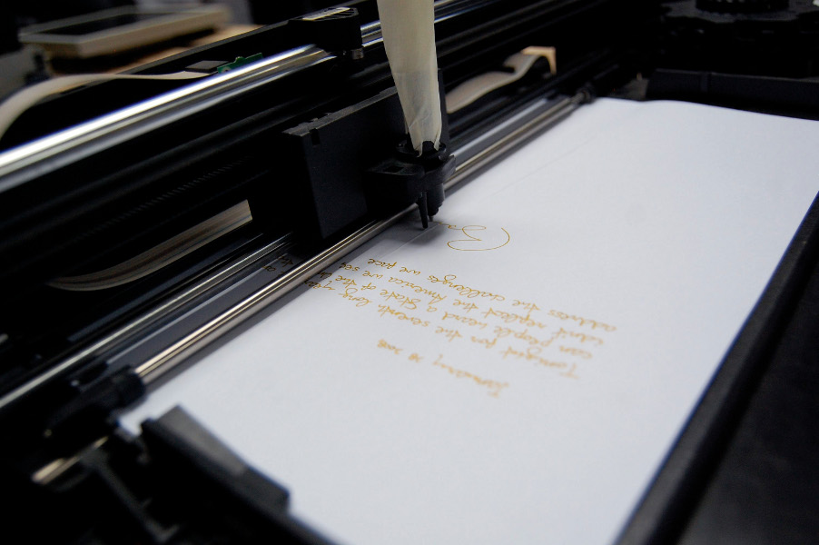 During the design of a typeface for a penplotter I discovered that the White House uses a variant of the pen plotter (an auto pen) to sign acts, with a 'recorded' signature , when the president can't be present. Through an amendment this mechanical signature has the same legality as the real 'human' signature by Obama. With my own software I can imitate this signature and thus pretend to be Obama and claim his 'power'.